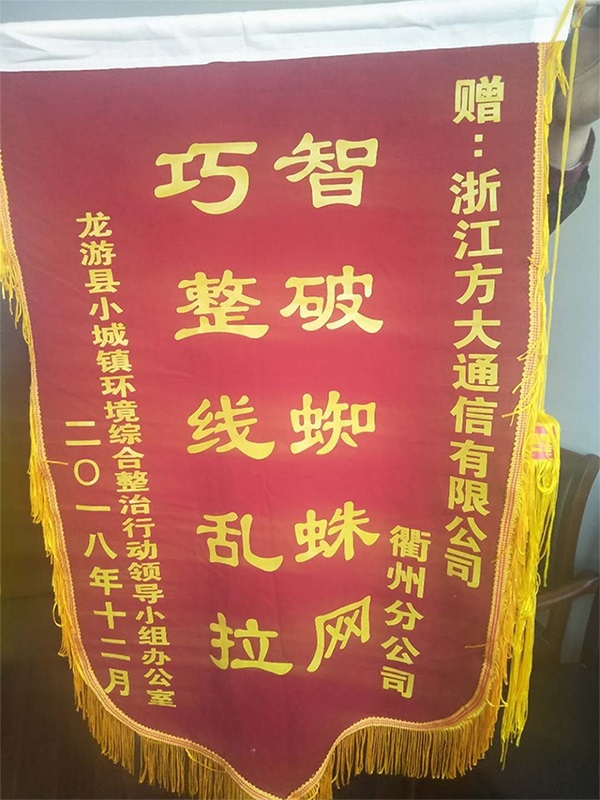 感謝各方對(duì)浙江方大通信有限公司的肯定,一封封感謝信、錦旗與榮譽(yù)是對(duì)我們工作最大的動(dòng)力,正如公司反復(fù)強(qiáng)調(diào)的核心—“質(zhì)量鑄就品質(zhì)、服務(wù)創(chuàng)造價(jià)值