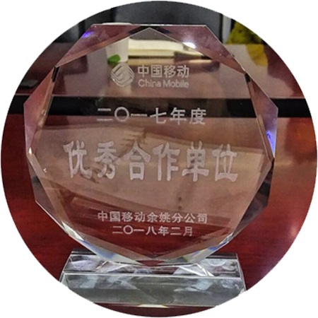 余姚維護(hù)中心被中國移動授予“優(yōu)秀合作單位”的光榮稱號。