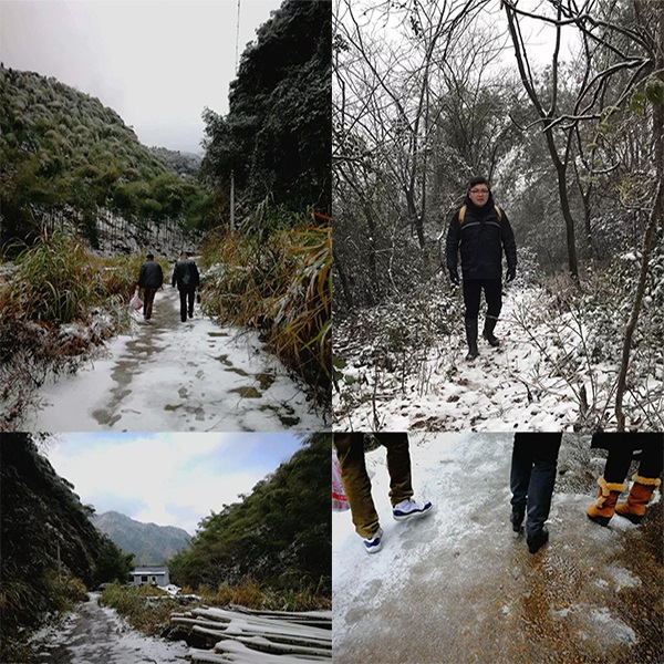 2018年1月29日上午11點(diǎn)。陳總已到達(dá)衢州鐵塔辦事處?。●R不停蹄,只為見(jiàn)見(jiàn)還在奮斗的方大通信人。衢江班子成員,有一名女將樊玉紅,還有男人董文國(guó),是他們帶領(lǐng)著團(tuán)體守衛(wèi)著衢州。還沒(méi)來(lái)得及坐下來(lái)好好吃飯,陳總一行人已經(jīng)往山上趕去,下雪天路面結(jié)著冰,對(duì)山路的不熟悉,還有肆虐的毛竹阻擋了我們的去路,但這些都不是讓我們停下腳步的緣由!沒(méi)有交通工具的協(xié)助,我們就靠自己有力的雙腿。
