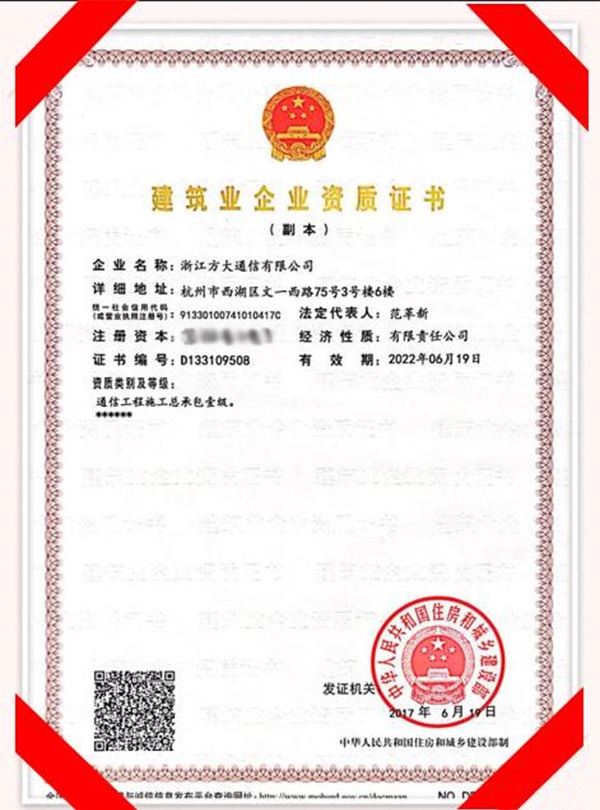 據(jù)中華人民共和國住房和城鄉(xiāng)建設(shè)部的層層嚴格審查審批,在2017年度第六批建設(shè)工程企業(yè)資質(zhì)資格名單的公告中,方大成功獲取“通信工程施工總承包壹級”資質(zhì),可喜可賀。