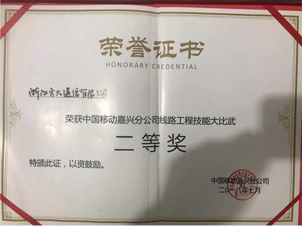工程技能大比武繼六月剛剛斬獲金華地區(qū)的二等獎(jiǎng)后,再接再厲,在中國移動(dòng)嘉興分公司線路工程技能大比武中獲得二等獎(jiǎng)的好成績。